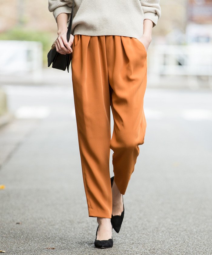 ニットを惹き立たせる上品なサテン素材が魅力のイージーパンツイージーな中にきちんと感のある、絶妙バランスを兼ね備えたイージーパンツです。ストレッチ性もある厚手のサテン生地を使用しており、光沢が出すぎない上品な表面感が特徴。程よいサルエルデザインがストレスフリーな穿き心地を叶えます。