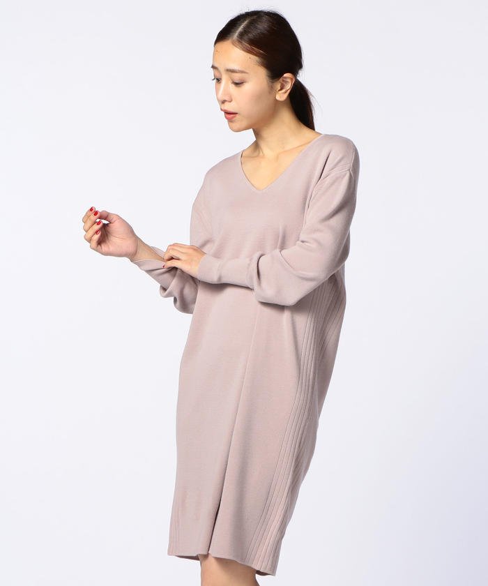 ウールソロVネックワンピース