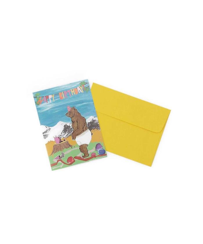 パンツを穿いたおとぼけなクマがお祝いしてくれる、何ともキュートなバースデーカード。色彩豊かな絵とビビッドな封筒に、センスの良さを感じさせるアイテムです。スペシャルなギフトに添えて、特別感のある贈り物に。