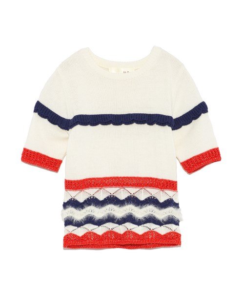 今季らしいレトロな配色がオシャレ度をぐっと高める半袖ニット。