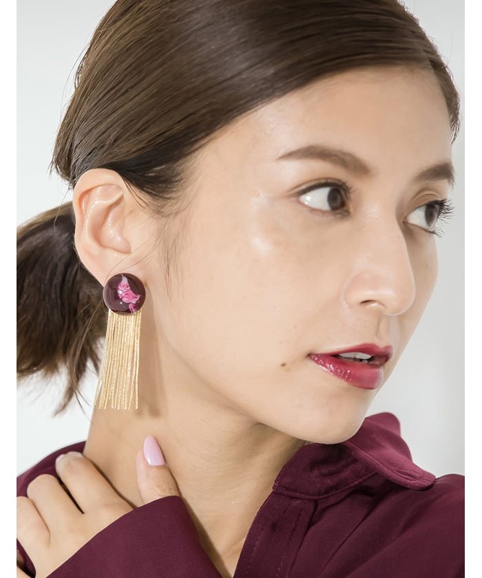 チェーンフリンジが耳元で揺れるモードな印象のピアス。