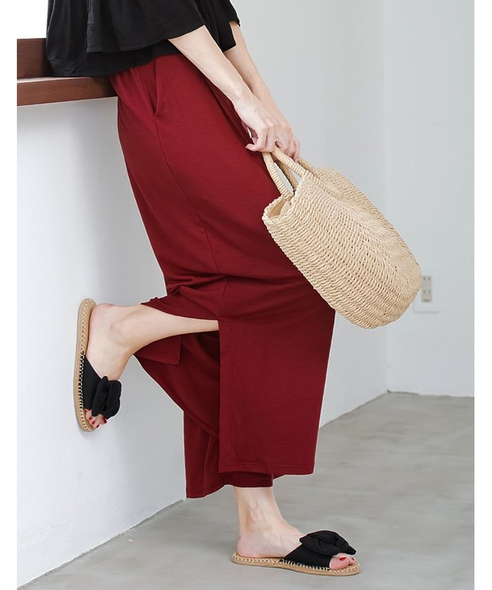 ストレッチ性の高いカットソー生地で仕上げたワイドパンツ。