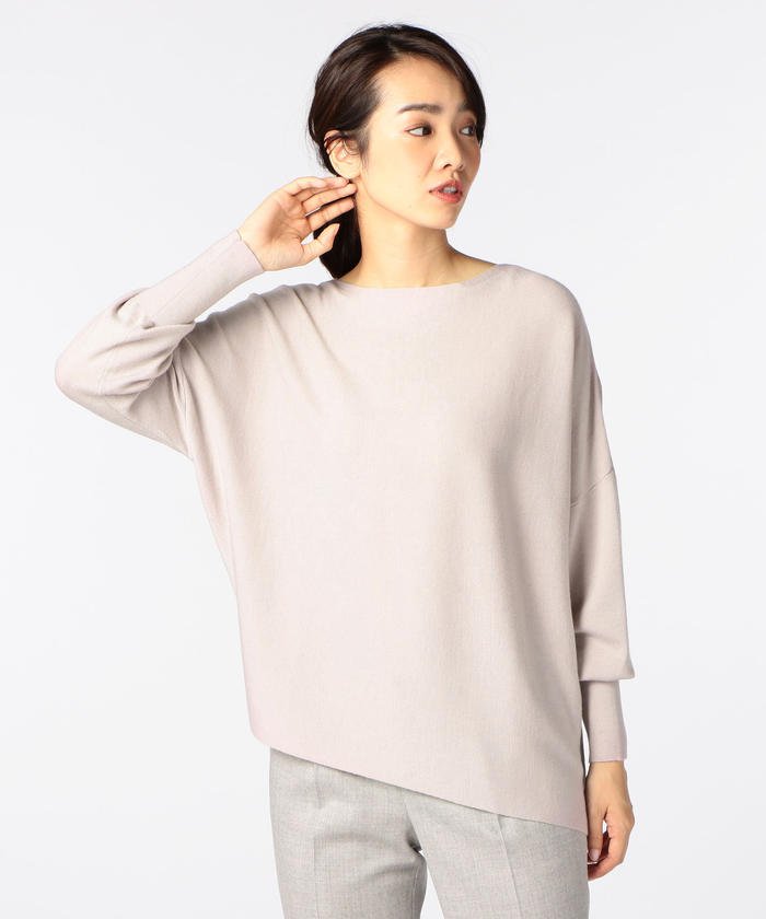 シンプルなボートネックをベースに技ありディテールを加えたプルオーバーです。アシンメトリーなヘムラインが描き出すドレープが、さりげない女性らしさを演出してくれる一枚。タイトシルエットのボトムでメリハリのあるスタイリングに、ボリューム感のあるボトムでのエフォートレスな着こなしにもマッチします。