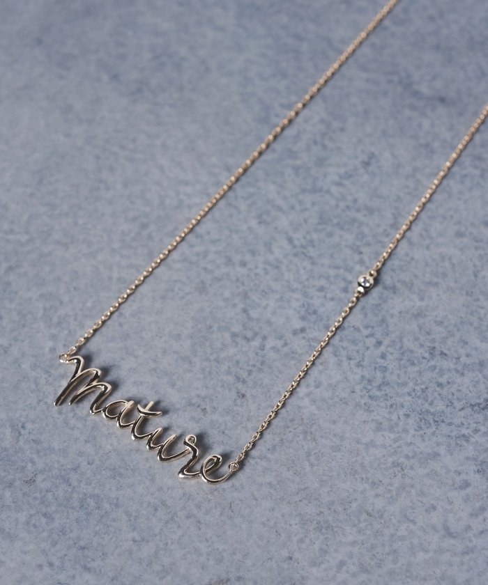 成熟を意味する「Mature」のロゴメッセージをあしらったネックレス。