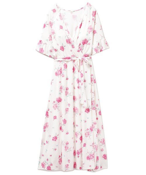 女性らしくエレガントに装える、カシュクールデザインのローズ柄ドレス。リボンベルトをきゅっと結べば、身体のメリハリもより際立ちます。袖口に広がりを持たせたボリュームスリーブも、仕草を印象的に魅せてくれそう。