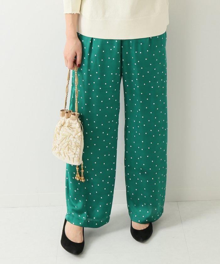 キャッチーなドットプリントにゆるっとした落ち感がヘルシーな印象のタックパンツ。
