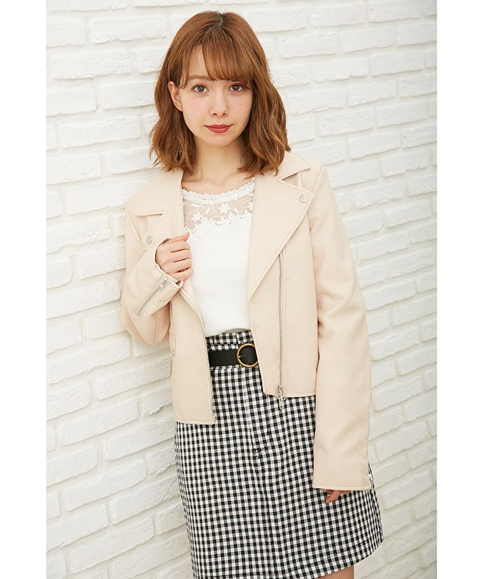 上質感のあるフェイクレザーで仕立てたライダースジャケットは、ミニマルなサイジングが女性らしく着られるアイテム。柔らかな生地と裏地付きなので、ごわつきを感じさせない着心地を実現。細部にこだわったデザインがライダース特有のハード感を抑え、バランス良くスタイリングできるのも魅力的なポイント◎。1着持っていて損のないアウターです。