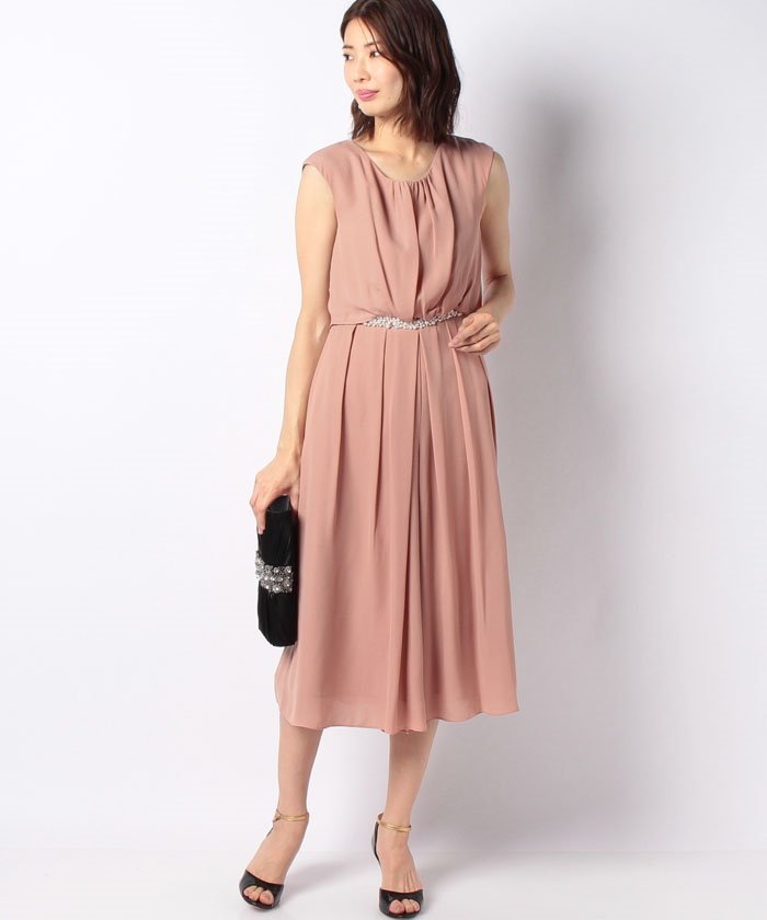 ウエスト位置にトッピングしたパールビーズが、きらりとさりげなくドレッシーに輝くガウチョデザインのオールインワン。エアリーなシフォン素材を使用しているから、女性らしい軽やかさ溢れる着こなしに。
