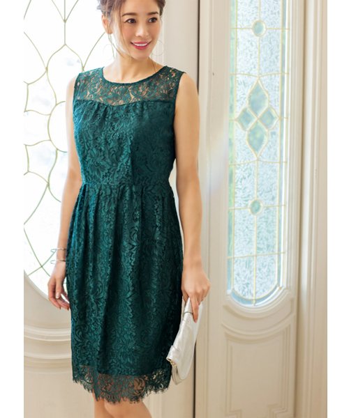 大人が似合う、ラグジュアリー感たっぷりなレースワンピース。お待たせいたしました。STYLE DELIからパーティーシーンに似合う【STYLE DELI DRESS】のラインが満を持して登場です!STYLEDELIが拘る、大人が着られるノーブル(=上品な)レースを使用したワンピースです。 草や花をモチーフとした上品な柄がポイント。光沢感のある華奢なレースが一段と華やかに見せてくれます。よくあるパーティー用のレースワンピースは細身でピッタリとしたものかAラインのフェミニンな印象のものがほとんどで、 大人の女性に似合うものがなかなか見つからない…。そんな悩みを解決するデザインに仕上げました! ウエストに細かく入ったタックは、気になる下腹部やヒップまわりをキレイにカバーしてくれ、 身頃部分にもタックが入っておりバストにも少しゆとりのある構造です。椅子に座ったときに、背中やスカート部分がピタッと張り付くこともありません。モデルが着ると膝上丈ですが、普通身長の方が着ると透け部分から少し膝が見えるような丈感です。上品な印象を保てるため、幅広いシーンでご着用いただけます。【その他のオススメポイント】・ブラックではない、深いカラー展開がポイント!オリジナルで染めた拘りカラーは、派手過ぎず落ち着いた印象に見せてくれるネイビーと、ディープグリーンの2色です。お肌がキレイに見える効果もございます。・光沢のないマットでサラサラしたタッチの裏地を使用しています。レースの隙間から見える裏地がマットなので安っぽさがなく、サラサラした裏地は肌触りが良いのはもちろん、暑い夏に汗で張り付く心配がないのも嬉しいポイントです。・女性らしいやや横に広がるネック開きで、ヨーク(身頃上の切り替え)のラインはさり気なくVラインに。真っ直ぐではないデザインが、エレガントな印象を与えてくれます。【透け感は?】・裏地の付いている部分に透け感はございません。深いお色ですので、安心して着ていただけます。【オススメのインナー】・ヨーク部分(身頃上の切り替え)がレースのみなので、肩紐がないベアトップがオススメです!