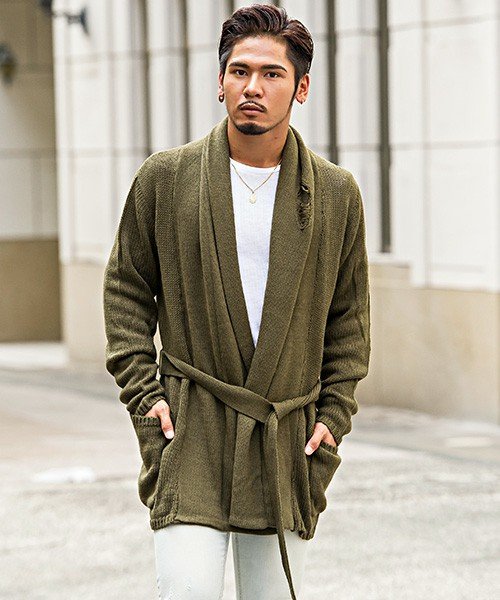 CavariA【キャバリア】ダメージ編みショールカラーカーディガン