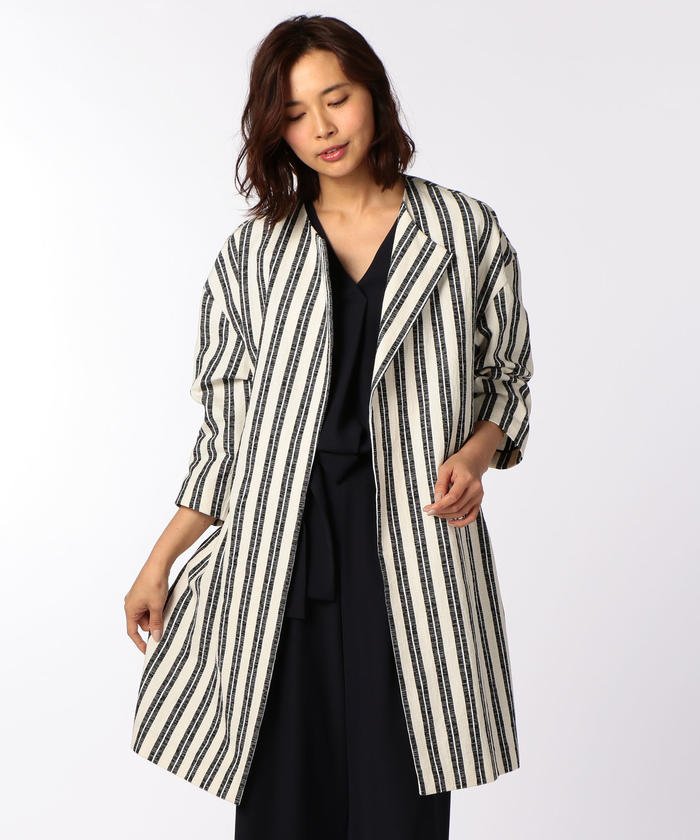 表情豊かな風合いを見せるジャガード生地はモノトーンのストライプで合わせやすく、一枚羽織るだけで様になるデザイン。マニッシュな柄とシンプルなシルエットが女性らしさを際立たせてくれます。パンツに合わせてシックにも、カジュアルにも。レディなスカートやワンピースと合わせたコーディネートにもおすすめです。